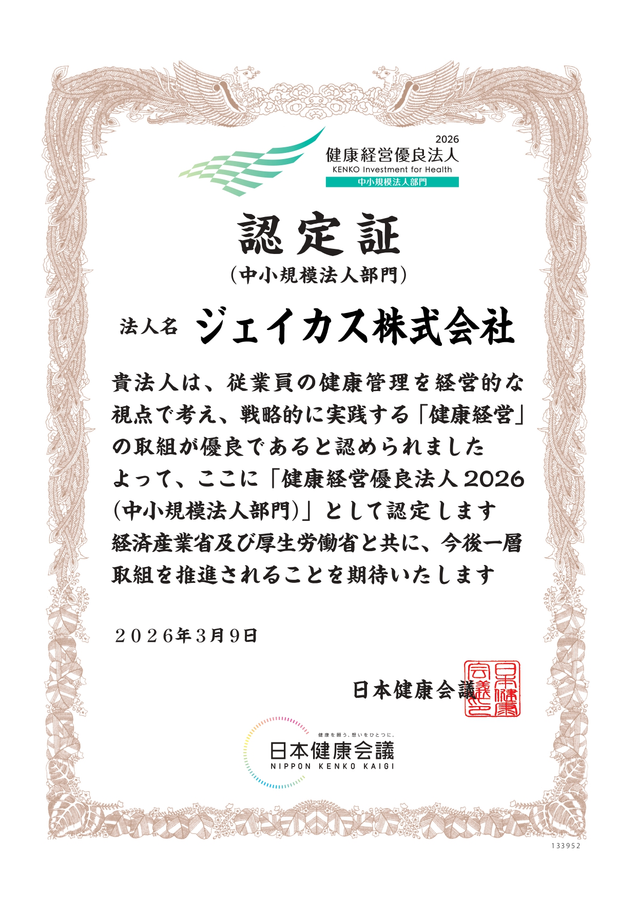 株式会社カーレントサービスは、経済産業省が創設した、特に優良な健康経営を実践している企業への顕彰制度「健康経営優良法人2026」に認定されました。